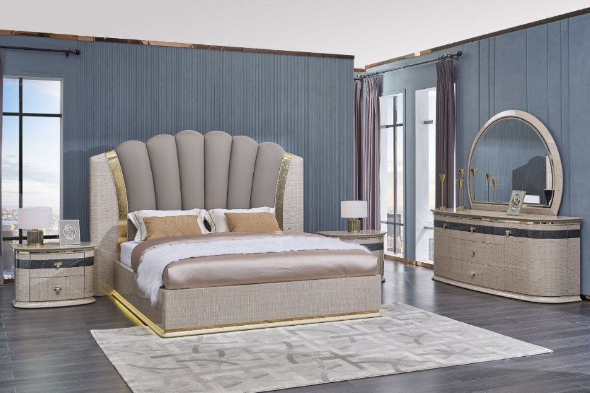 This bed is a glamorous and sophisticated grouping that adds a chic